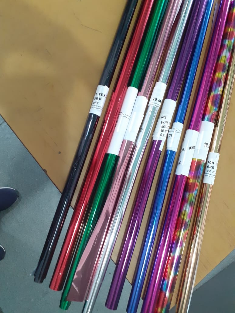 Tintas de solventes, vinílicas, multisol, PP | Papel foil | Glitter de colores varios